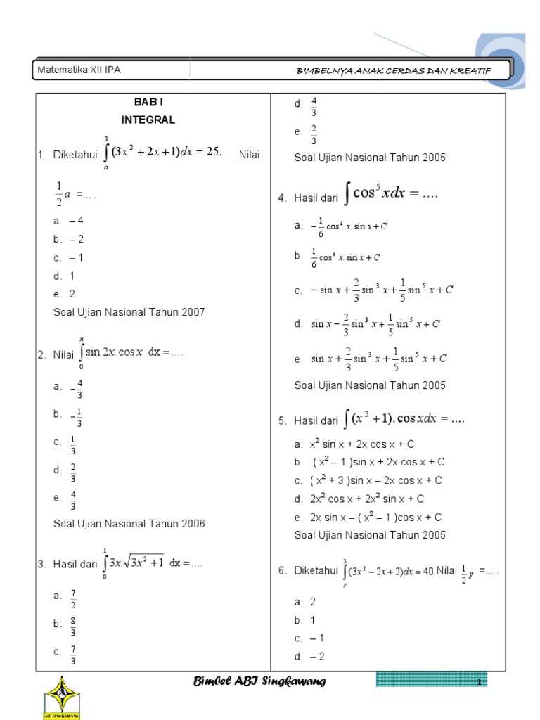 Bank soal matematika kelas 12 ipa. Cek kumpulan materi soal soal matematika peminatan kelas 12 kurikulum 2013 revisi sma dan kunci jawabannya. Download Soal dan Kunci Jawaban PAT Matematika IPA Kelas 10 Semester Genap 2020 PDF Kurikulum 2013 Revisi Terima kasih untuk pengunjung yang telah mengingatkan admin RukimID untuk upload bank soal PAT SMA Kelas X dan XI tahun 2020. Administrasi evaluasi berupa bank soal ini kami berikan secara berkala dan berkelanjutan ada yang berbentuk tema dan ada pula yang berbentuk mata pelajaran.