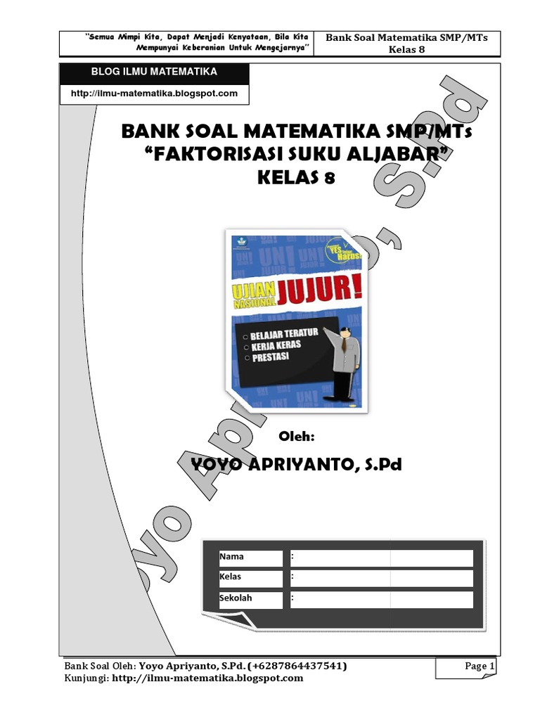 Ayo Belajar Soal Matematika Smp Kelas 8 Aljabar