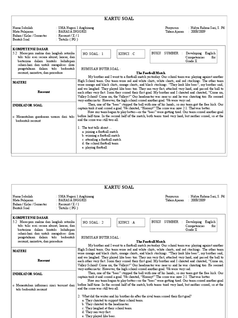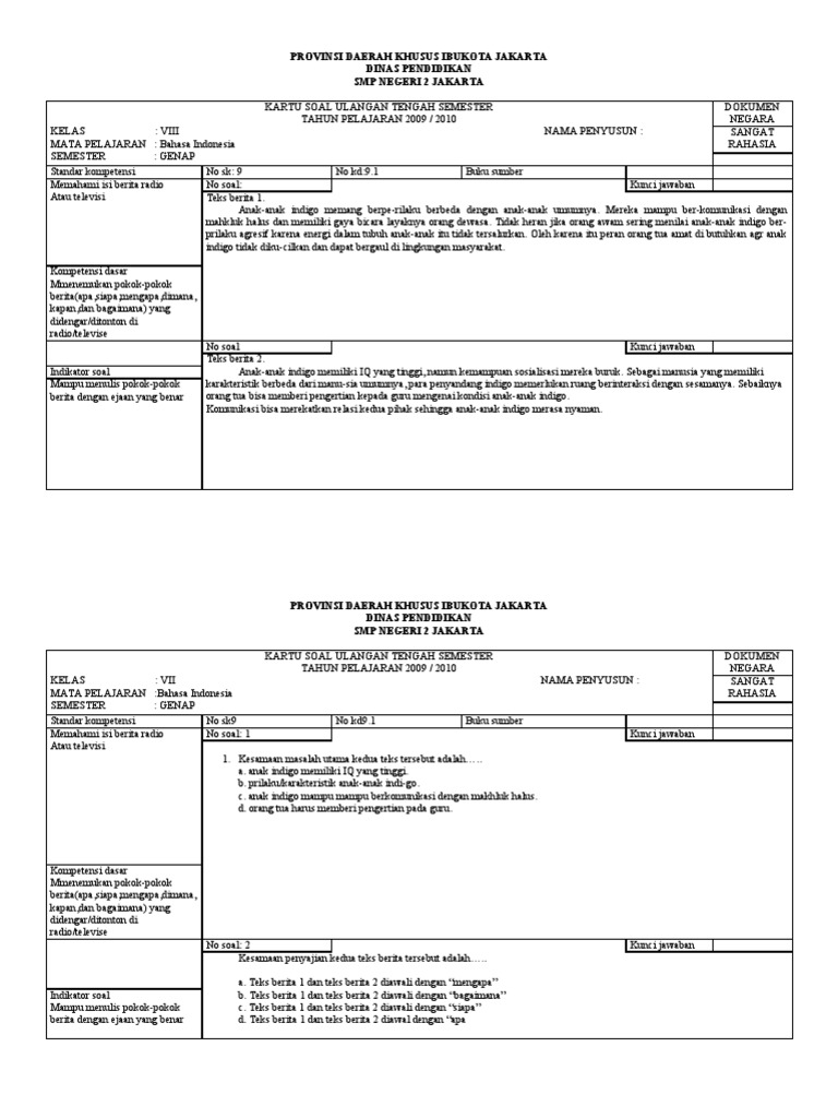 Kartu Soal Bahasa Indonesia Smp Kelas 8 Berbagi Info Kartu