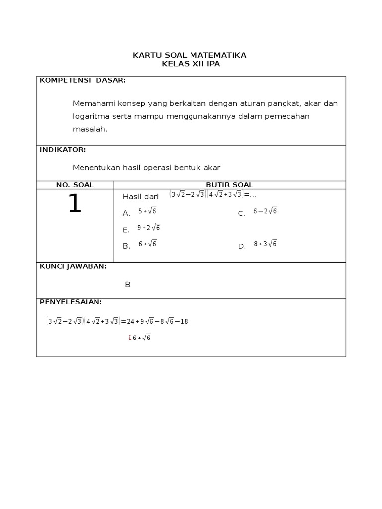 Kartu soal dan kisi kisi soal matematika kelas xii smk Kunci Jawaban Matematika Kelas 5 Kurikulum 2013 Halaman 61 Kunci Jawaban Matematika Kelas 6 Halaman 61 Guru Ilmu Sosial. Semua video materi di bawah ini didesain dengan runut dan terstruktur. Fungsi 9 Apa itu Eksponen.