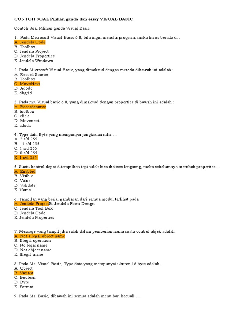 Contoh Soal Pilihan Ganda Dan Essay Visual Basic