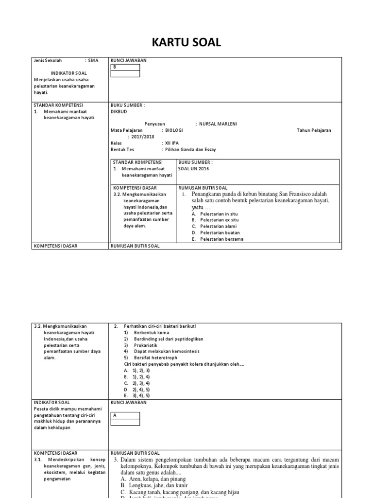 Kumpulan Soal Biologi Beserta Kd Dan Indikator Dan Kunci Jawaban