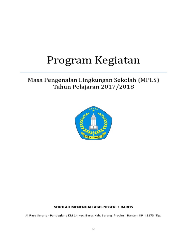 Proposal ini ditujukan kepada Kepala Sekolah SMA Negeri 1 Sumberjaya untuk memberikan dukungan terhadap kegiatan PLS Tahun Ajaran 20162017. Proposal MPLS silahkan download disini. Sebagai pedoman berikut kami bagikan Panduan Masa Pengenalan Lingkungan Sekolah MPLS Masa Pandemi COVID-19 Tahun Ajaran 20202021.