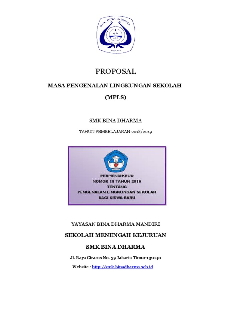 Memberikan bekal pengenalan kegiatan intrakulikuler di SMA. Peraturan Bupati Purwakarta Nomor 69 Tahun Tahun 2015 tentang Pendidikan Karakter Kabupaten Purwakarta. Contoh Proposal MPLS SMASMK Terbaru Tahun 2018 - Pada kesempatan kali ini saya akan bagikan salah satu file penting berhubungan dengan kegiatan Masa Pengenalan Lingkungan Sekolah yakni Proposal MPLS khususnya untuk Panitia jenjang SMAMASMK.