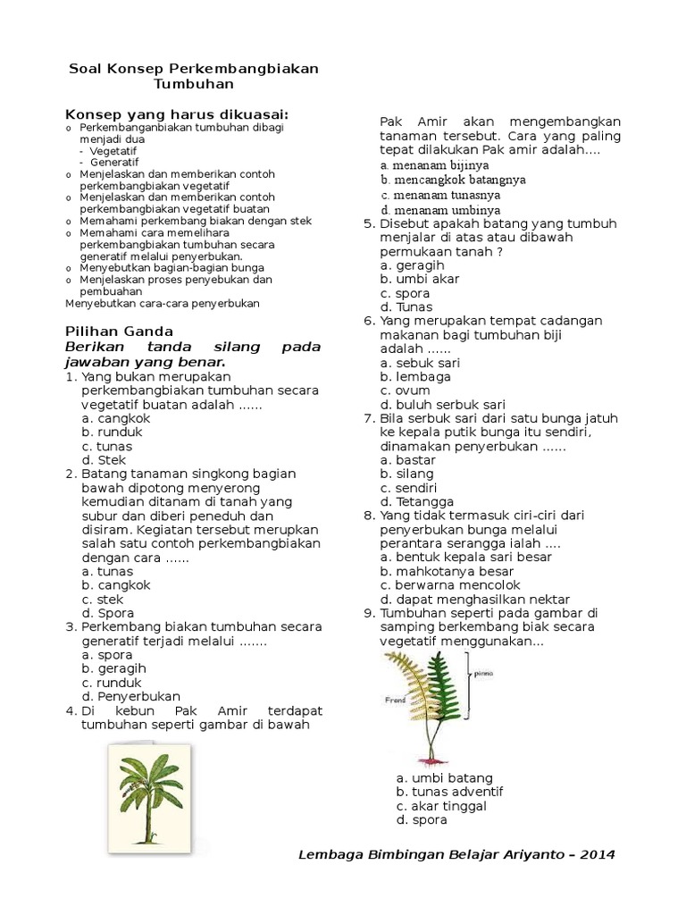 Kumpulan Soal Penilaian Harian Ipa Kelas 9 Materi Perkembangbiakan Tumbuhan Didno76 Com