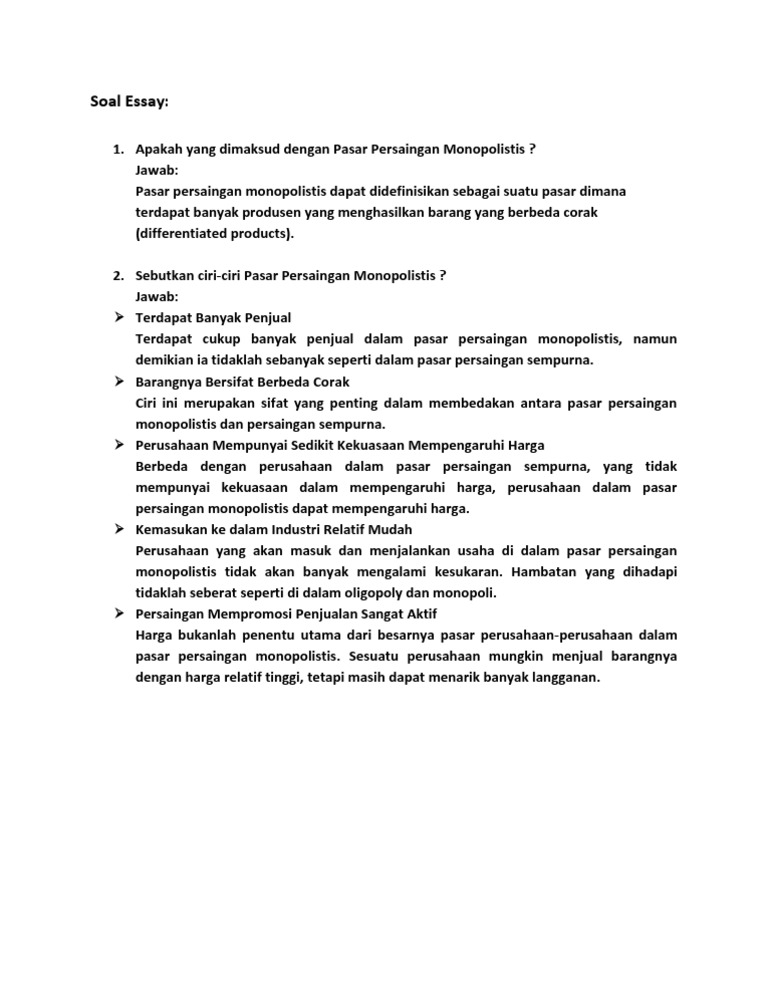 Contoh Soal Dan Jawaban Pasar Monopoli Berbagi Contoh Soal Cute766