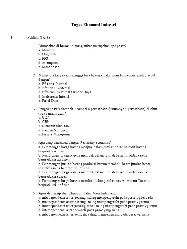 Contoh Soal Pilihan Ganda Tentang Pasar Monopoli Dapatkan Contoh
