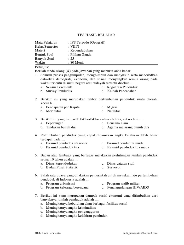 25 Soal Ips Smp Tentang Kependudukan