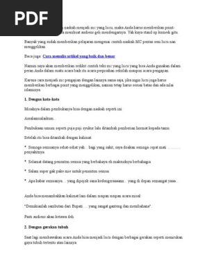 Cara Membuat Naskah Stand Up Comedy 1. Bencana kembali melanda salah satu wilayah di indonesia. Contoh teks pembawa acara mc bahasa sunda dalam sebuat acara sering kita melihat orang yang ditugaskan untuk mengatur acara yang biasa disebut dengan pembawa acara atau mc master of ceremony.