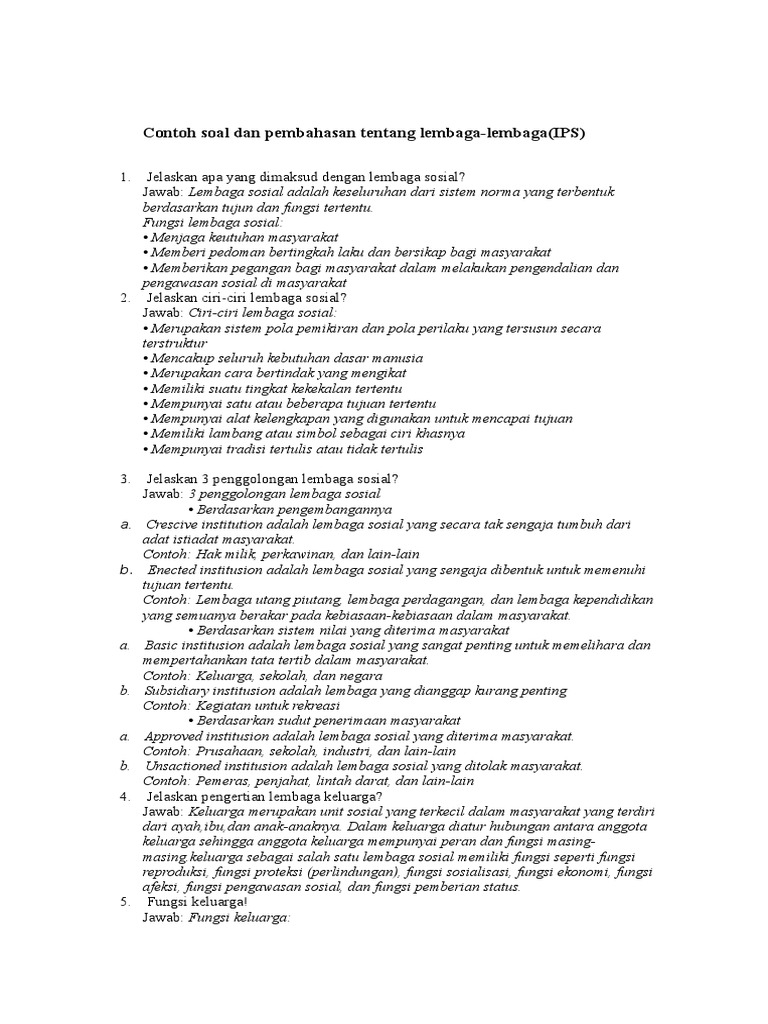 Contoh Soal Dan Pembahasan Tentang Lembaga Sosial Dalam Masyarakat
